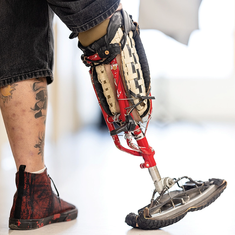 Hogan made his first prosthetic leg from bike parts in 2013, but shelved the concept until “I could tell the world that I officially had my 10,000 hours in prosthetics to master the concepts,” he says. “But I picked it back up in 2024, and I have been moving at a fast clip