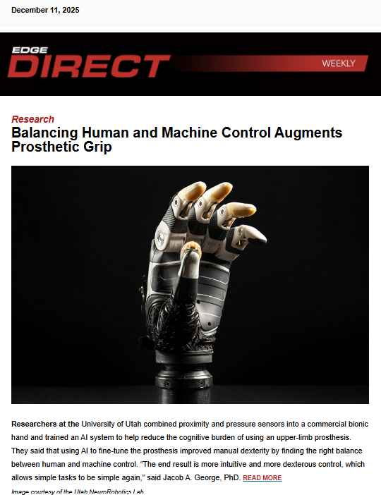 Each week, EDGE Direct is delivered by email to O&P professionals, allied healthcare providers, students, and consumers. It includes news, exclusive content, sponsored stories, and calendar listings, and. Special editions cover industry conferences and breaking news.