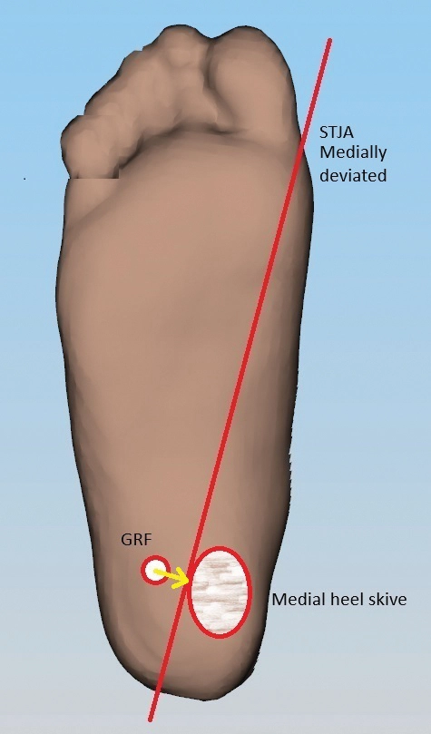 The biomechanical principles underlying the medial heel skive rely on an understanding of the ground reaction force (GRF) acting on the foot and the pronation moment it creates across the STJA. In turn, these help determine the depth and extent of the positive cast correction.