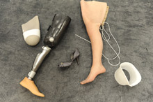 Photograph of the prop leg created by Schaffer, and the prosthesis Grey’s Anatomy character Dr. Arizona Robbins “wears” in her role as an amputee. Photographs courtesy of A Step Ahead Prosthetics.