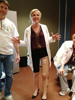 Capshaw models the prop transfemoral prosthesis created by Schaffer.